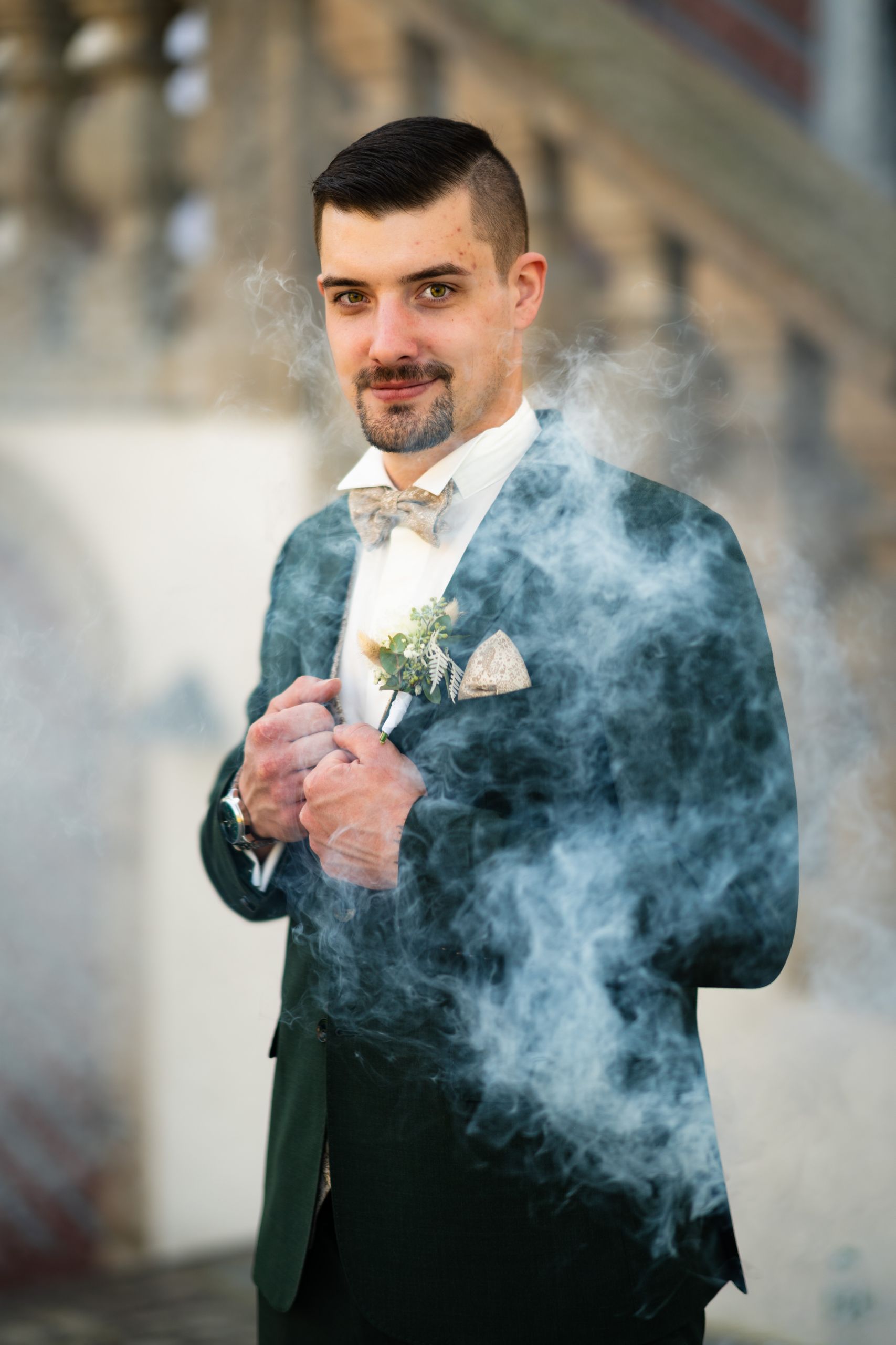 Ich habe schon mit Projektor-Lichtmalerei, rauchigen Effekten und sogar einem Falken gearbeitet. Dazu kommen künstlerische Konzepte mit Kerzenwachs, urbane Styles mit Graffiti und Spraydosen oder verträumte Experimente mit besonderen Lichtinstallationen.